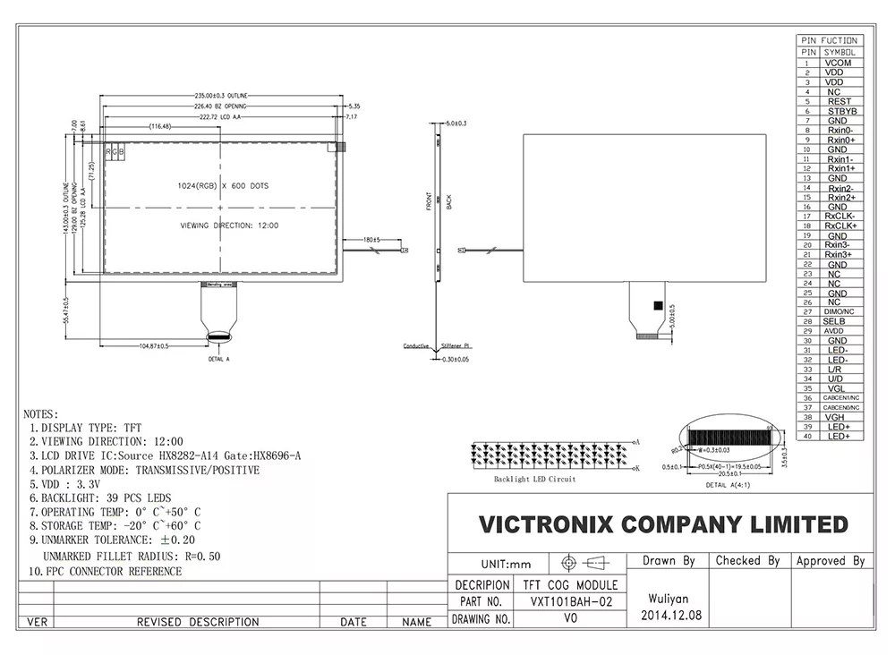 VXT101bah-02 एक THT-LCD मोड्युल हो। यो एक TFT-LCD प्यानल, ड्राइभर आईसी, एफपीसी, एक पछाडि लाइट एकाईको बनेको छ। 10.1 प्रदर्शन क्षेत्रले 10224 x 60000 पिक्सेल समावेश गर्दछ र 1 16..7m र colors हरू सम्म प्रदर्शन गर्न सक्दछ। यस उत्पादन रोह सम्भावित मापदण्डको साथ व्यवहार गर्दछ